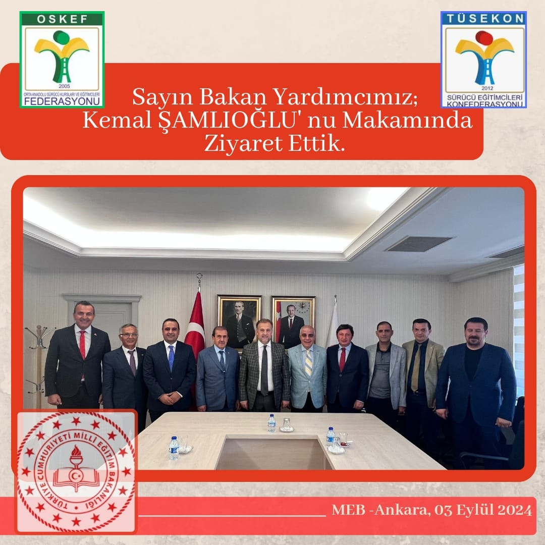 Sürücü Eğitimcileri Konfederasyonu İcra Kurulu Üyelerimiz olarak MEB Bakan Yardımcımız Sayın Kemal Şanlıoğlu'nu makamında ziyaret ettik.